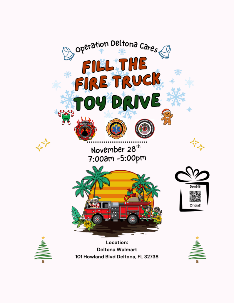 Every Black Friday, the Deltona Firefighters Foundation proudly launches Operation Deltona Cares: Fill the Truck, an annual tradition dedicated to bringing joy and hope to children in our community. With the help of generous neighbors, friends, and supporters, our mission is simple but powerful — to fill a fire truck with toys that will brighten the holiday season for local kids and families in need. Together, we can transform the spirit of giving into lasting holiday cheer for those who need it most.